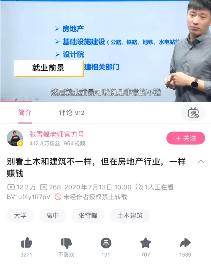 “我报志愿的时候就是看了这个视频,选了土木。”刘宇忍不住在评论区留言,嘲笑自己的处境。